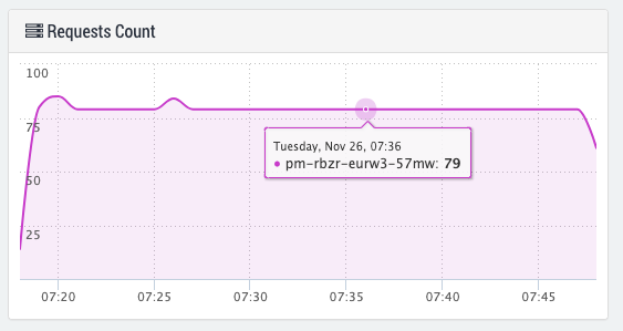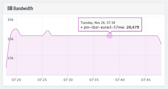 The downstream bandwidth limitation per response. Left-axis units are "k" for kilobytes, and "M" for megabytes.