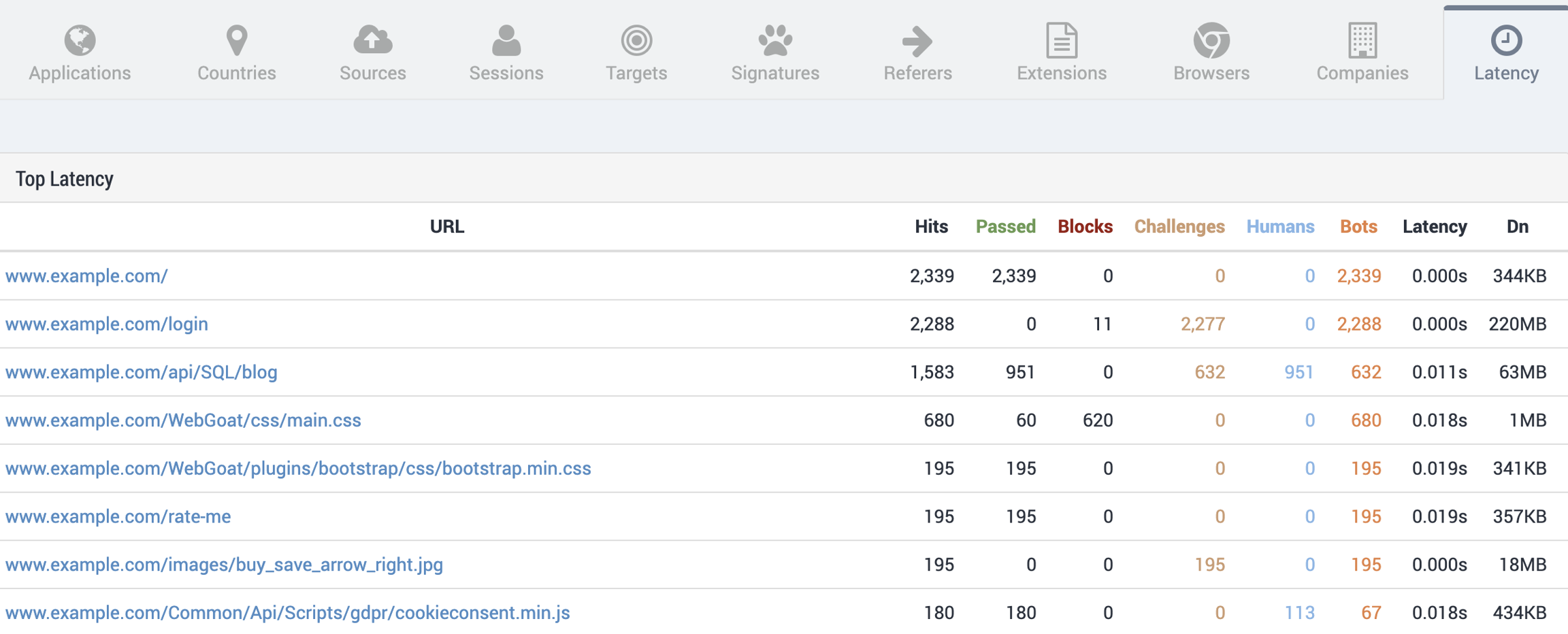 Note that in this section, "Passed" and "Latency" entries aren't shown, and "Cloud", "Anon" and "Blockage" are added. Their meanings are: