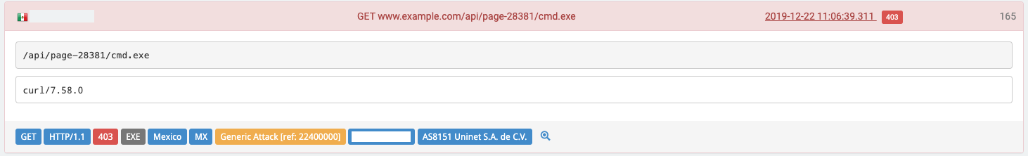 The example above shows a request that was answered with a challenge. It came from a known cloud provider, by curl, to www.example.com.