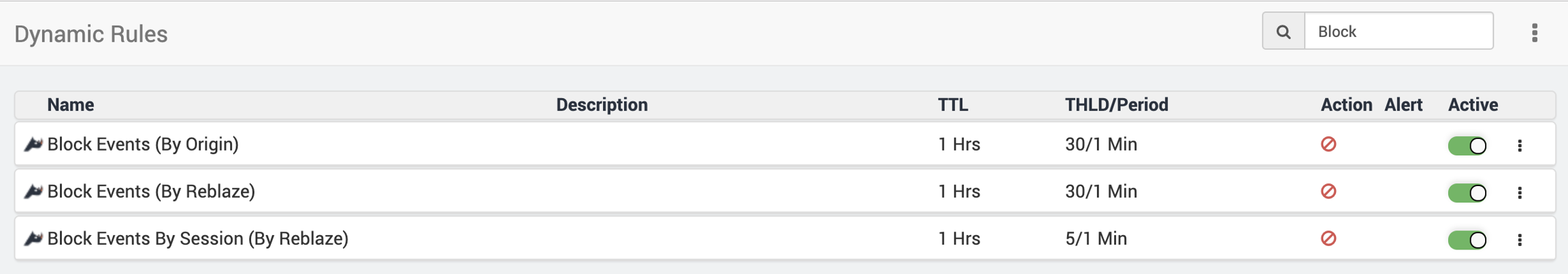 Note that Dynamic Rules do not block requests; they ban the sources of requests. Individual incoming requests are blocked for reasons defined elsewhere, e.g., in ACL Policies.