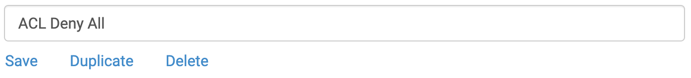 To create a new ACL, select the Create New button toward the top of the screen, then choose "ACL Policy." Or, duplicate an existing ACL and then edit the newly-created copy.