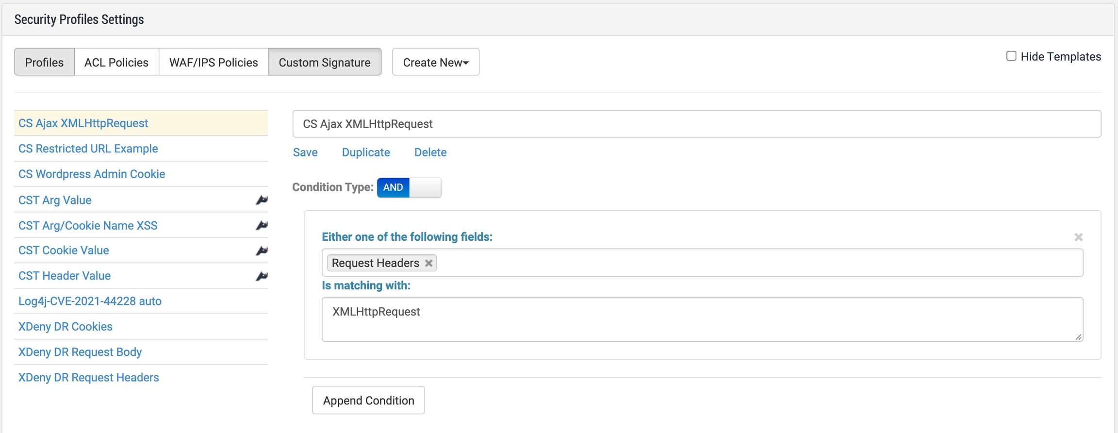 Custom signatures are custom matching conditions that you can use in ACL Policies to evaluate client requests.