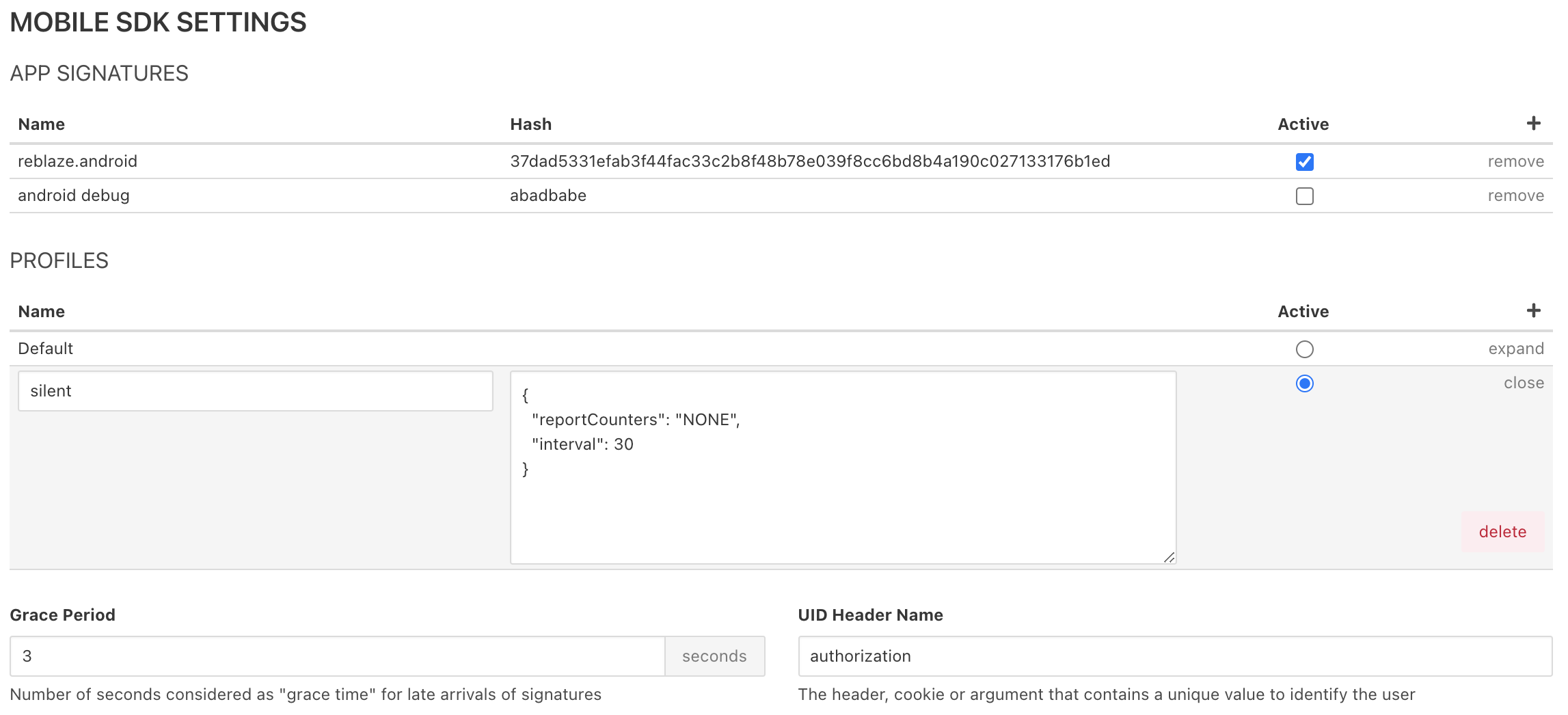 Documentation for the old versions of Mobile SDK is available here. Note that the Grace Period field is read-only; it only reflects the global setting above.