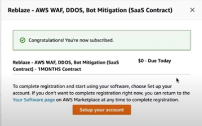 AWS will inform you that you have subscribed. Now click Setup your account.