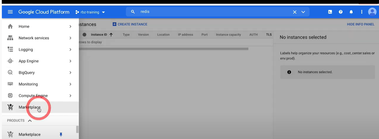 * When Memorystore has been enabled, the following window appears. Select **Marketplace***.*