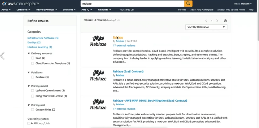 This section describes how to onboard and deploy Reblaze via the Amazon AWS Marketplace.