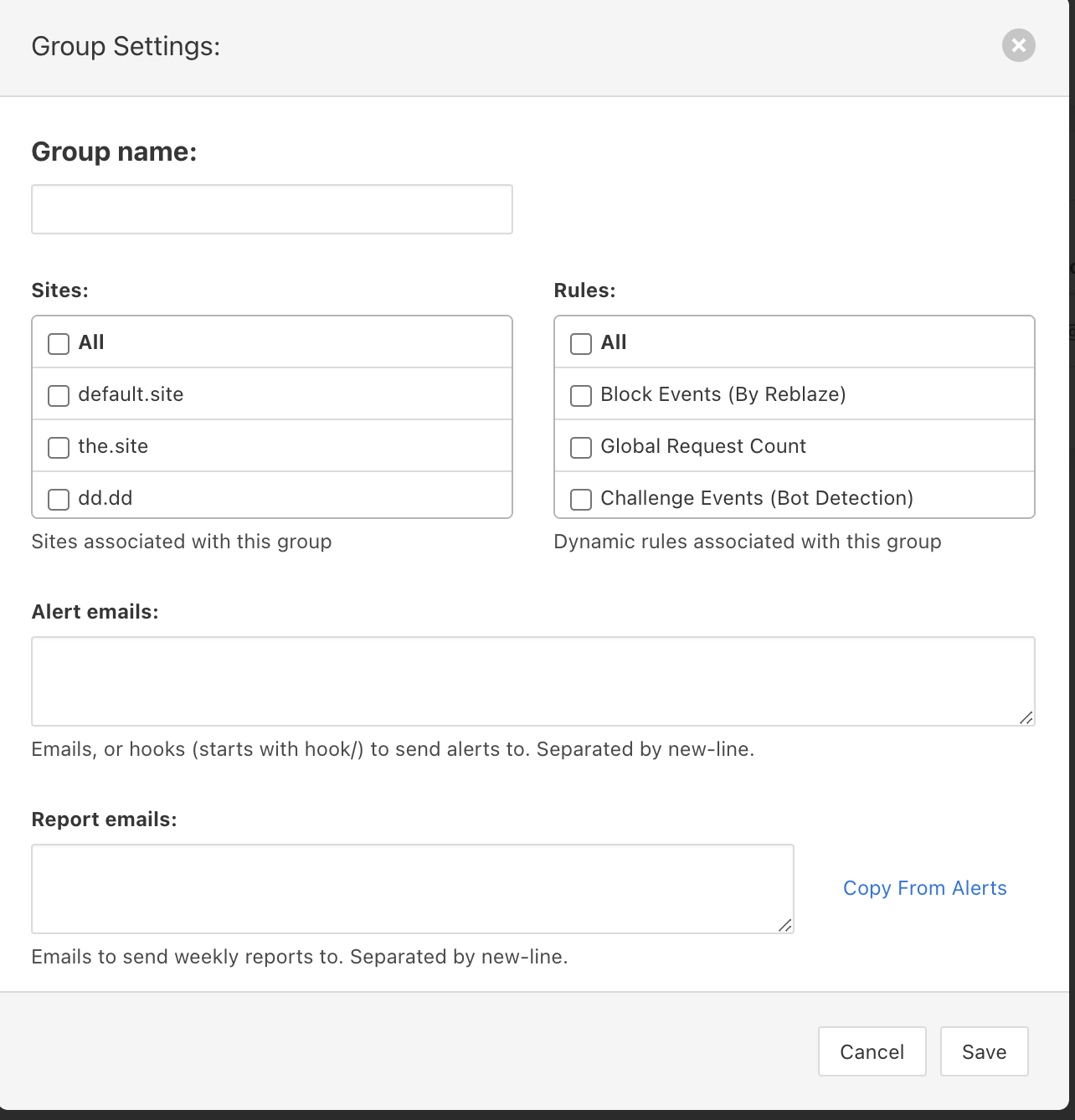 The Reblaze interface does not offer the ability to create a new site or application from scratch, because this process is complicated and error-prone. Instead, you will duplicate the default application and then edit it as needed.