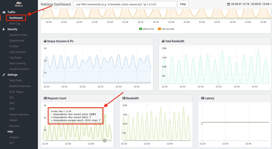 Before diving into the interface, it's helpful to first read Traffic Concepts: How Reblaze reports on the requests it receives.